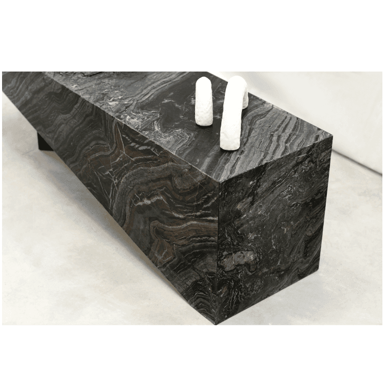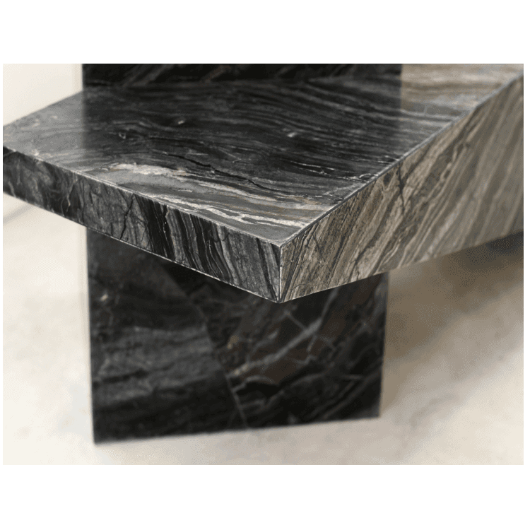 Adding to its allure, a side table box crafted from the same Black Forest Marble is seamlessly integrated with the bench. This intelligent design not only complements the overall aesthetics but also offers practicality and functionality, providing a convenient surface for placing drinks, books, or decorative items.