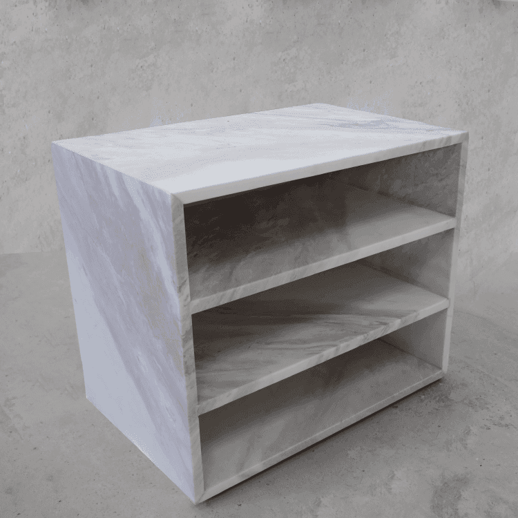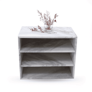 Introducing the Driya Side Table, a functional and stylish addition to elevate the decor of any bedroom. Crafted with meticulous attention to detail, the Driya Side Table boasts three shelving units, providing ample storage and display space for essential items and decor accents. Whether its books, bedside essentials, or decorative pieces, the versatile shelving units offer convenient organization while adding a touch of sophistication to the room.The clean lines and contemporary design of the Driya Side Table make it a versatile piece that complements a variety of bedroom aesthetics, from minimalist to transitional. Its compact size makes it an ideal choice for smaller spaces or as a functional accent beside a bed or reading nook.