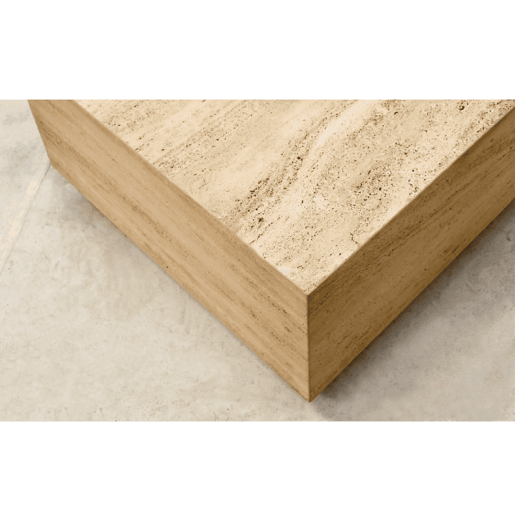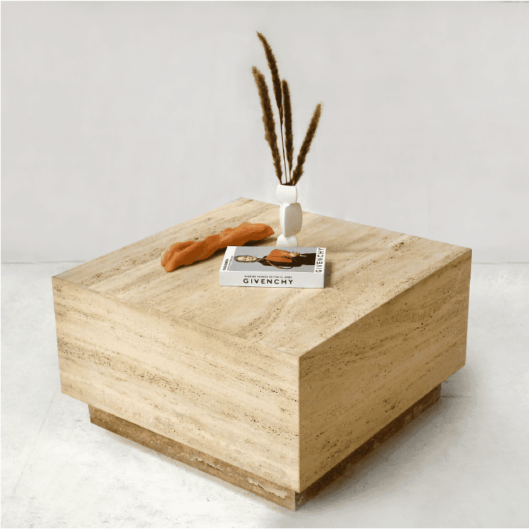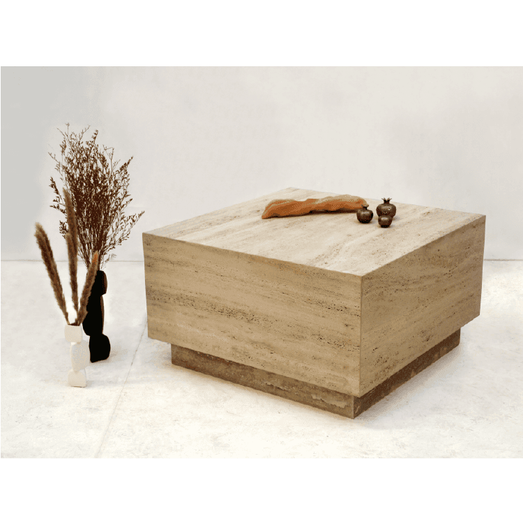 Crafted with precision, this table features a stunning travertine stone surface, renowned for its unique veining and rich, earthy tones. The square design adds a modern touch, while the inherent variations in the stone make each piece one-of -a-kind.