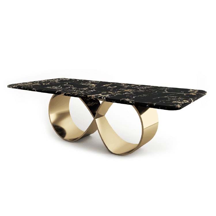 It is all about the details and materials used to create this gorgeous table, where the infinity black metal reflects the love and holds the Portoro Gold marble. Gather your loved ones at that table of endless love and collect your beautiful memories around it. Set this table with 8 dining chairs of your choice for maximum convenience.