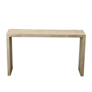 The soft, neutral beige tones of the travertine lend a warm and inviting ambiance to your space, making it a perfect addition to various interior design styles. Whether placed in a living room, hallway, or entryway, this console tables timeless color palette allows it to blend seamlessly with a wide range of decor themes, from contemporary and minimalist to traditional and rustic.