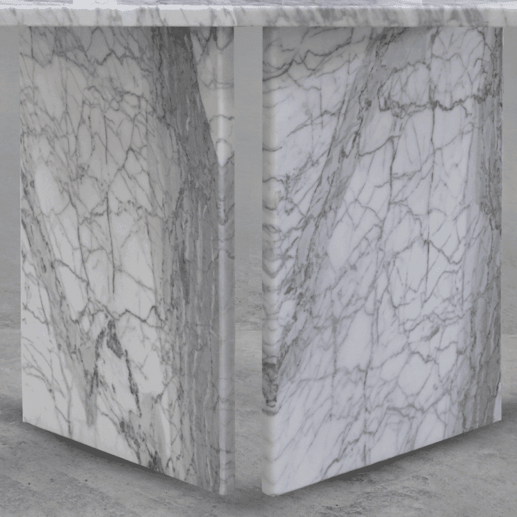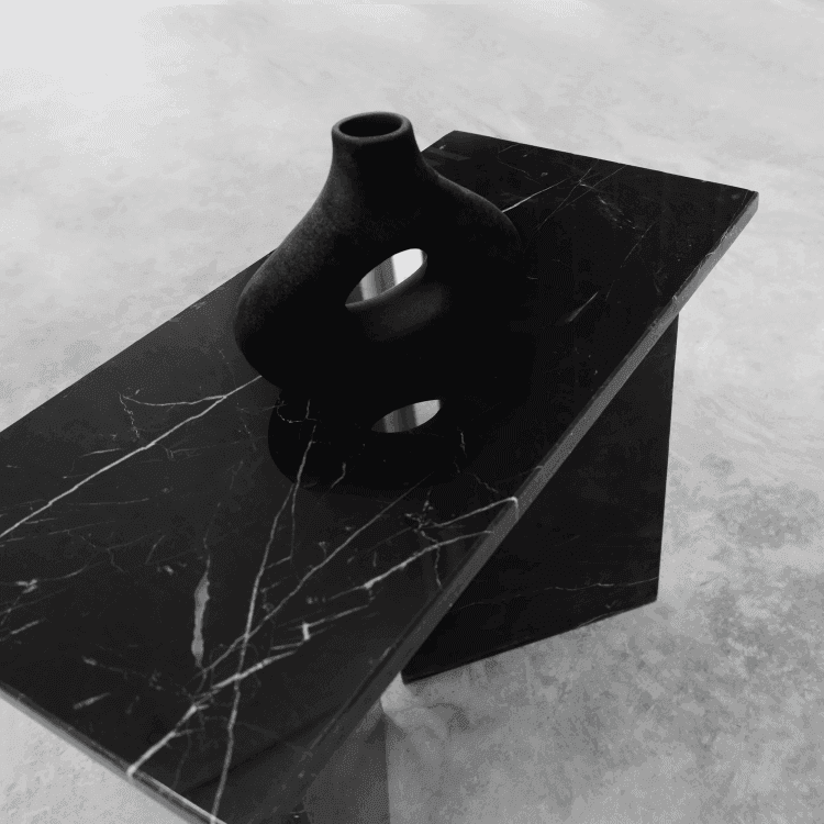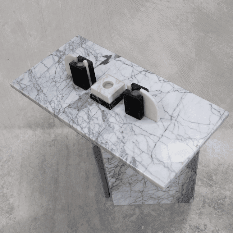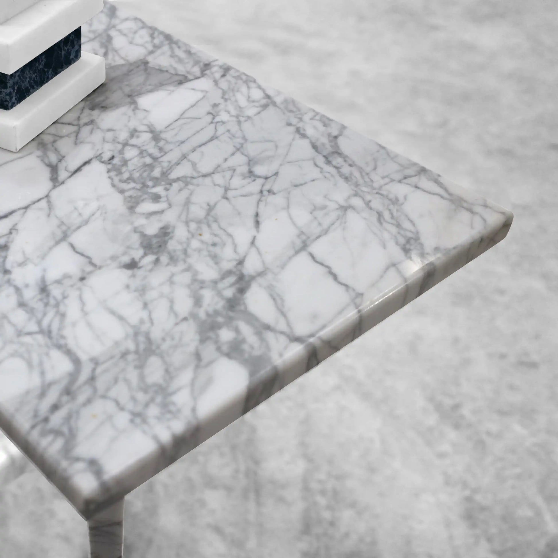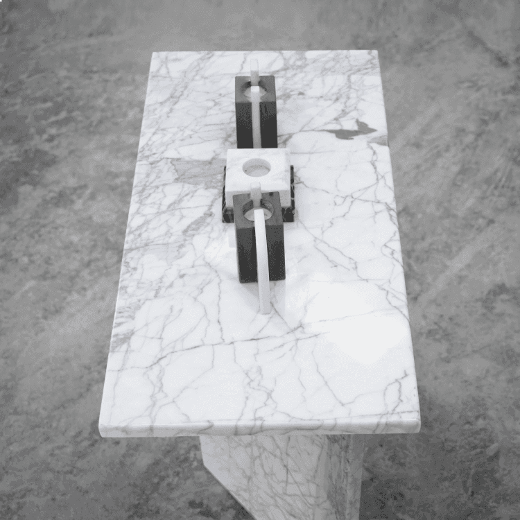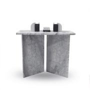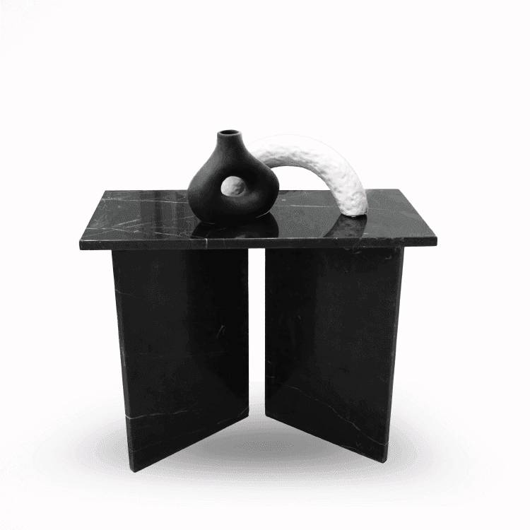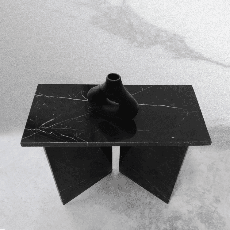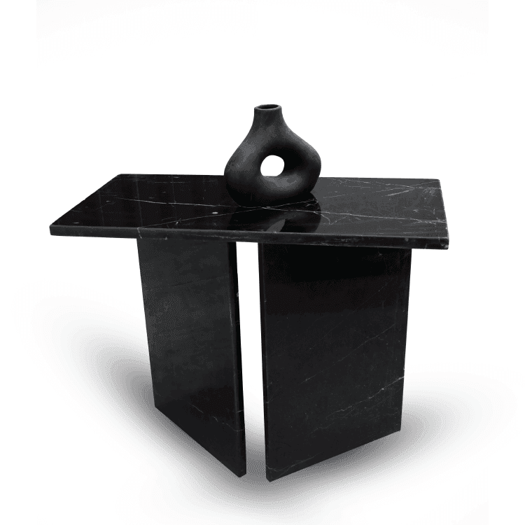 Adding to its allure are the two rectangular legs, artfully designed to complement the shape of the tabletop seamlessly. Carved from the same marble material, these legs not only provide sturdy support but also serve as a visually captivating element, creating a harmonious balance between form and function.