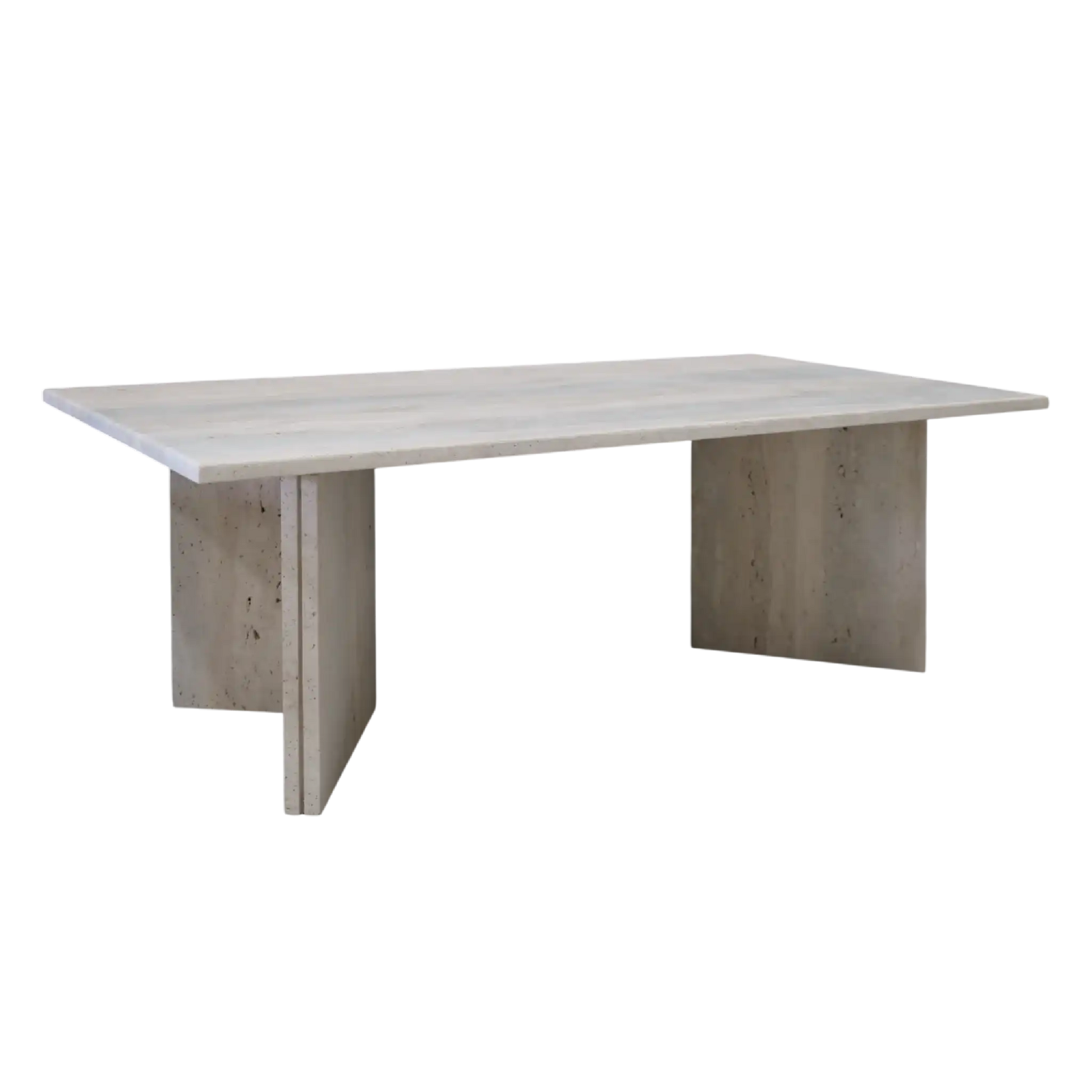 Introduce timeless sophistication to your home with our Terrano Travertine Coffee Table, meticulously crafted from premium travertine stone. This minimalist rectangular design is defined by its bold slab legs and a smooth honed finish that beautifully enhances the stone’s natural textures, showcasing warm, earthy tones that effortlessly complement any interior style.