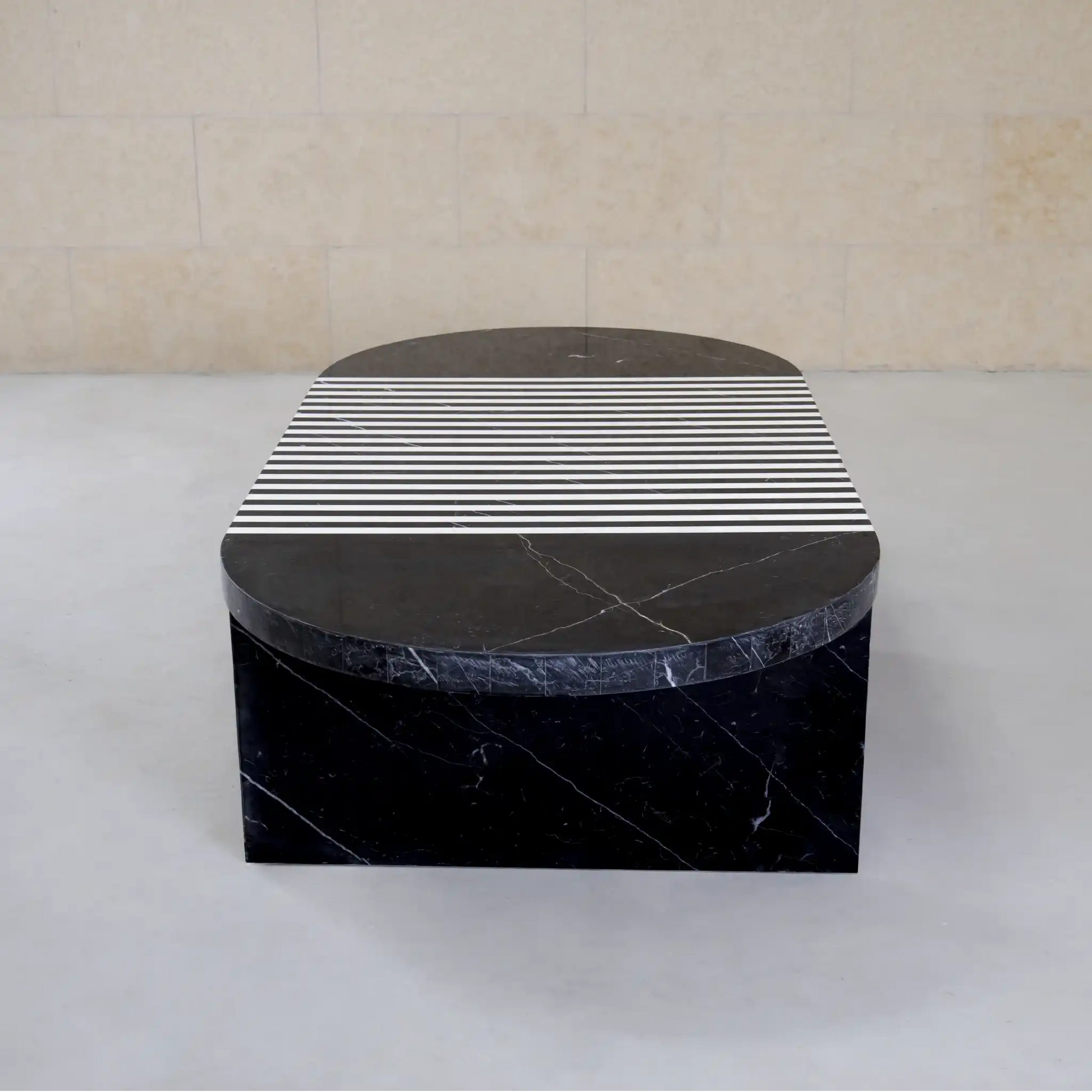 Elevate your living space with the Zibresse Oval Coffee Table, a luxurious centerpiece that blends modern style with timeless materials. Featuring an eye-catching oval marble top, this table is crafted from rich black marble adorned with bold white stripes, creating a dramatic yet elegant visual effect.